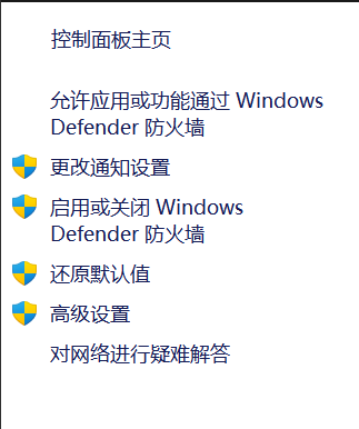 控制面板\系统和安全\Windows Defender 防火墙