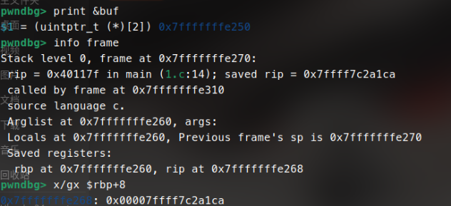 得知$rbp+8 = 当前函数保存返回地址的内存位置